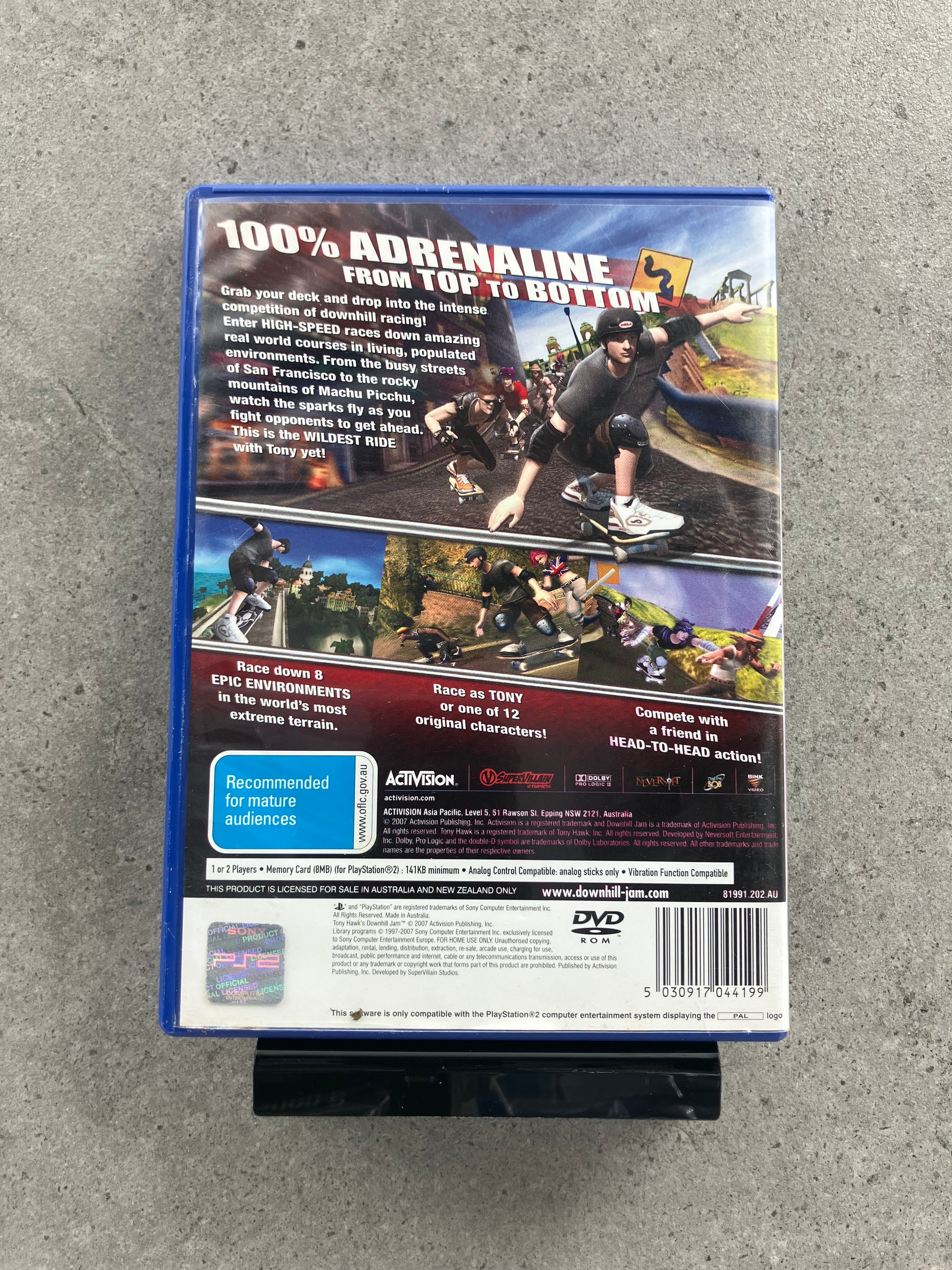 Multiple modes include career races, trick-focused events and multiplayer competitions. Playable skaters feature both real-world pros and fictional characters, each with upgradeable stats. While different from the classic combo-focused formula, Downhill Jam offers a fast-paced alternative for players wanting racing intensity mixed with skate culture on PS2.