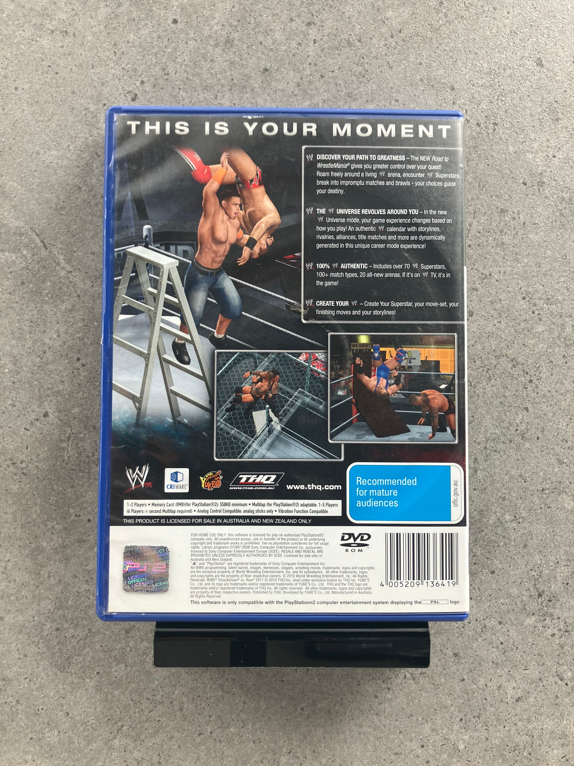 Road to WrestleMania mode offers cinematic storylines with branching paths, while Universe Mode introduces an ongoing WWE calendar where rivalries and title matches unfold dynamically. The Creation Suite returns with detailed customisation options for wrestlers, entrances and move-sets. As the final SmackDown vs. Raw release on PS2, it stands as a strong send-off for the console generation.